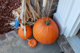 We have a few pumpkins and two scarecrows on the outside of our house.